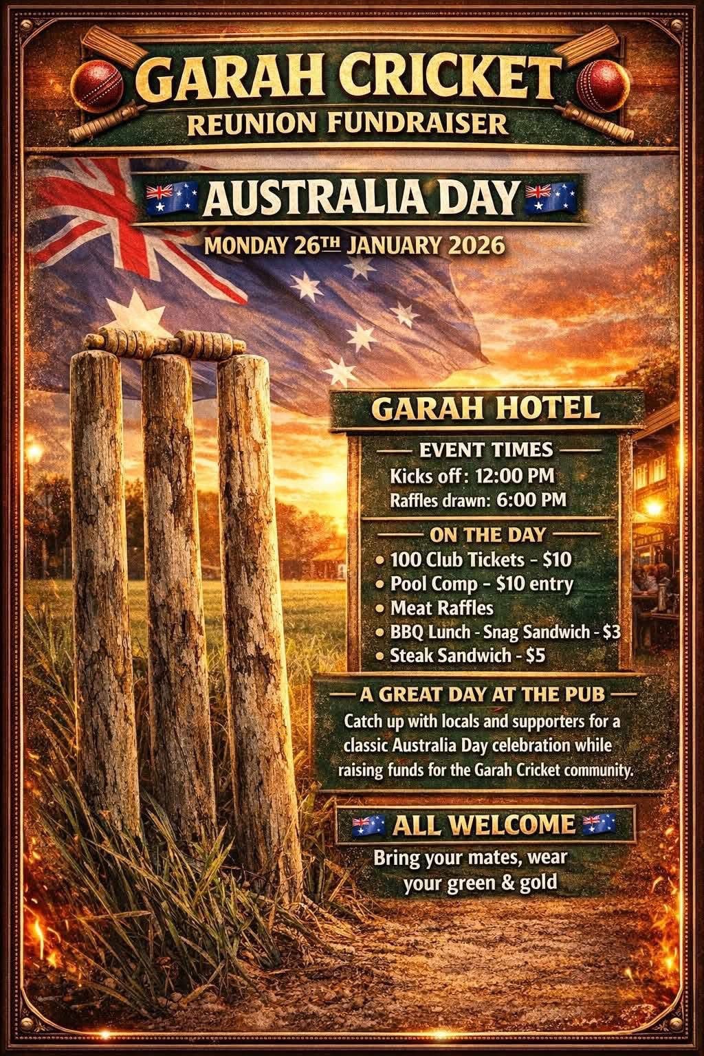 Australia Day 26th January with Public Holiday. A collection of event flyers is attached.